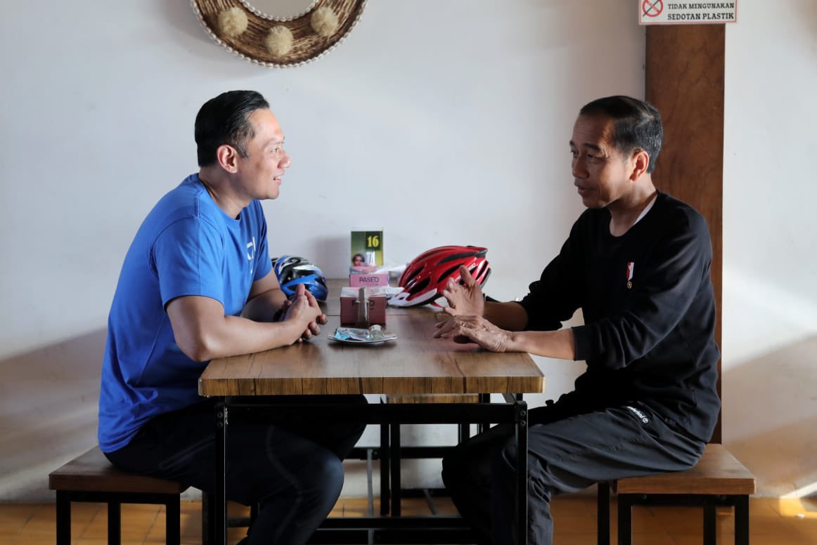 “Usai bersepeda dan sarapan bersama Bapak Jokowi, kami banyak berdiskusi membahas isu-isu kebangsaan dan tentu terkait kesiapan Pemilu agar berjalan dengan aman, damai dan demokratis,” kata AHY.