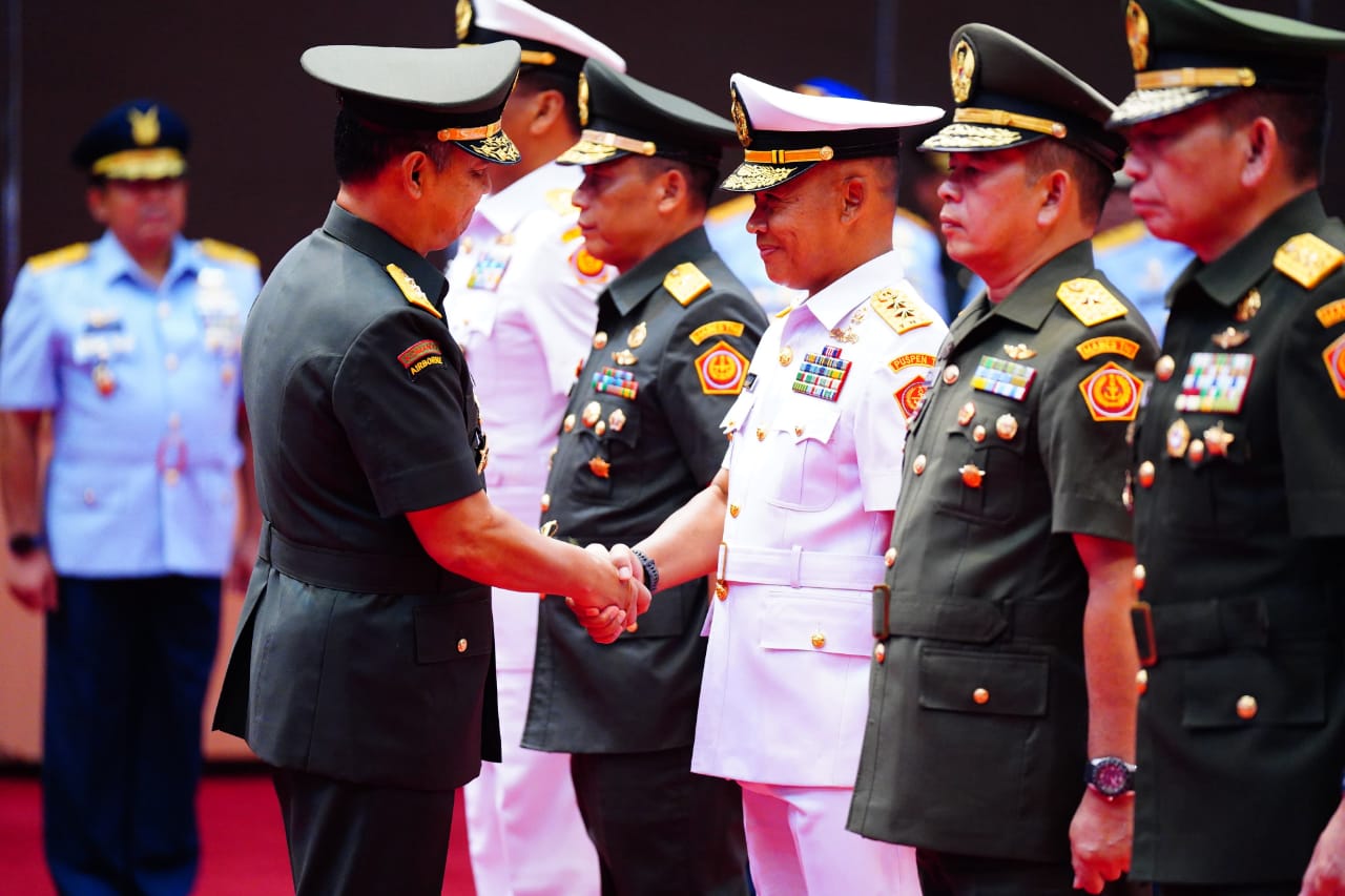 JAKARTA – Kepala Staf Umum TNI, Letjen TNI Bambang Ismawan, S.E., M.M., mewakili Panglima TNI Jenderal TNI Agus Subiyanto sebagai pimpinan acara serah terima jabatan Koorsahli Panglima TNI, Kapuspen TNI, Kapusjianstralitbang TNI, Kapuskersin TNI dan Kasetum TNI, bertempat di Aula Gatot Soebroto Mabes TNI Cilangkap, Jakarta Timur, Jumat (22/12/2023).