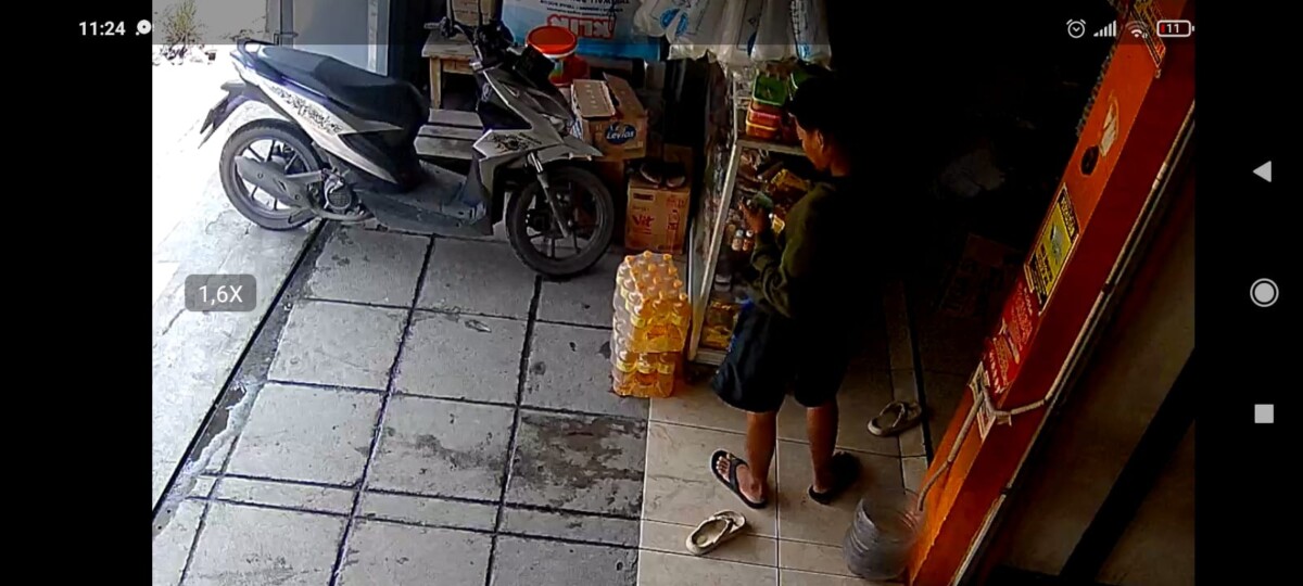 Kejadian tersebut berawal ketika salah satu remaja berpura-pura membeli air mineral di warung tersebut, sementara rekan lainnya menunggu di sepeda motor di luar. Dengan kelicikan, remaja yang berada di dalam toko kemudian mengambil 2 pack minyak goreng yang terletak di depan toko dan langsung melarikan diri bersama rekannya.