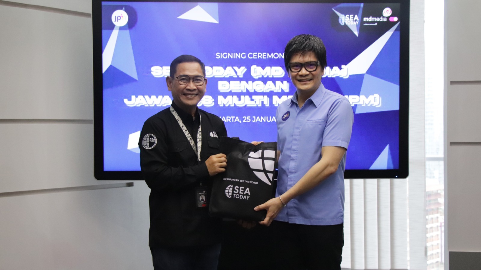 JAKARTA – SEA Today dan Jawa Pos Multimedia melakukan penandatanganan kerja sama untuk distribusi dan komersialisasi program. Kolaborasi dua perusahaan ini menjadi langkah awal yang signifikan dan menjanjikan untuk peningkatan visibilitas dan jangkauan program SEA Today di berbagai wilayah geografis di Indonesia. Kerja sama ini secara resmi ditandatangani oleh Direktur Operasional dan Penjualan MD Media sekaligus CEO SEA Today Pujo Pramono dengan Direktur Jawa Pos sekaligus Presiden Direktur Jawa Pos Multimedia Maesa Samola.