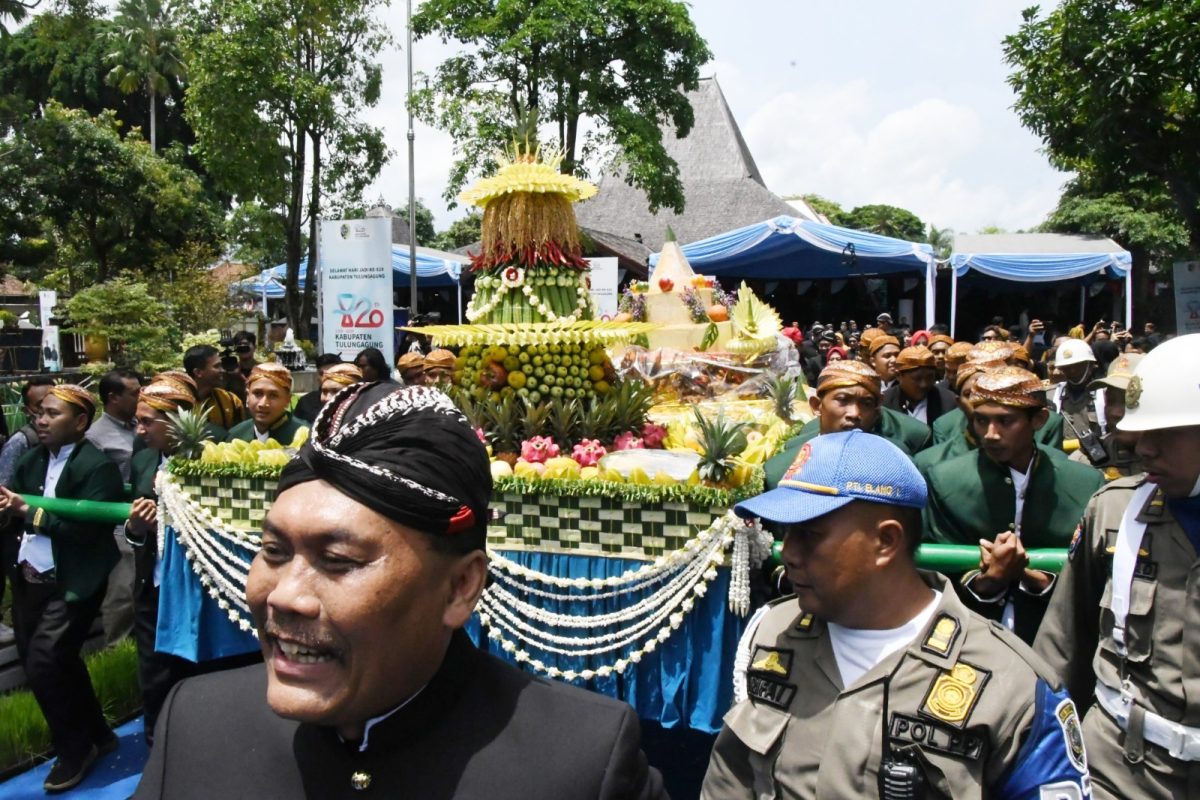 Dalam kirab tersebut, Bupati Tulungagung, Ketua DPRD, Dandim, Kapolres, perwakilan Kajari, dan Sekda memimpin arak-arakan menggunakan kereta kencana menuju Pendopo Kongas Arum Kusumaning Bongso. Di belakang mereka, barisan becak yang ditumpangi para kepala OPD beserta istri turut memberi sentuhan kemeriahan khas kota ini. Namun sorotan terbesar tak lain adalah Tumpeng Lanang dan Tumpeng Wadon, dua gunungan raksasa yang membuat warga berdesakan ingin melihat lebih dekat.